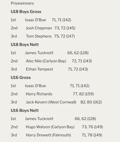 Posted on: 15/06/2021This weekend, James Tucknott, a Year 9 student, did extremely well in the Cornwall Golf Union Junior Championships which was held at Carlyon Bay Golf Club. Competing against a very strong field which contained all of the best junior golfers from around Cornwall, some whom have senior level experience representing Cornwall and indeed some England Golf Junior squad members, James managed to win the nett elements in both the Under 18’s and the Under 16’s sections which was quite remarkable.